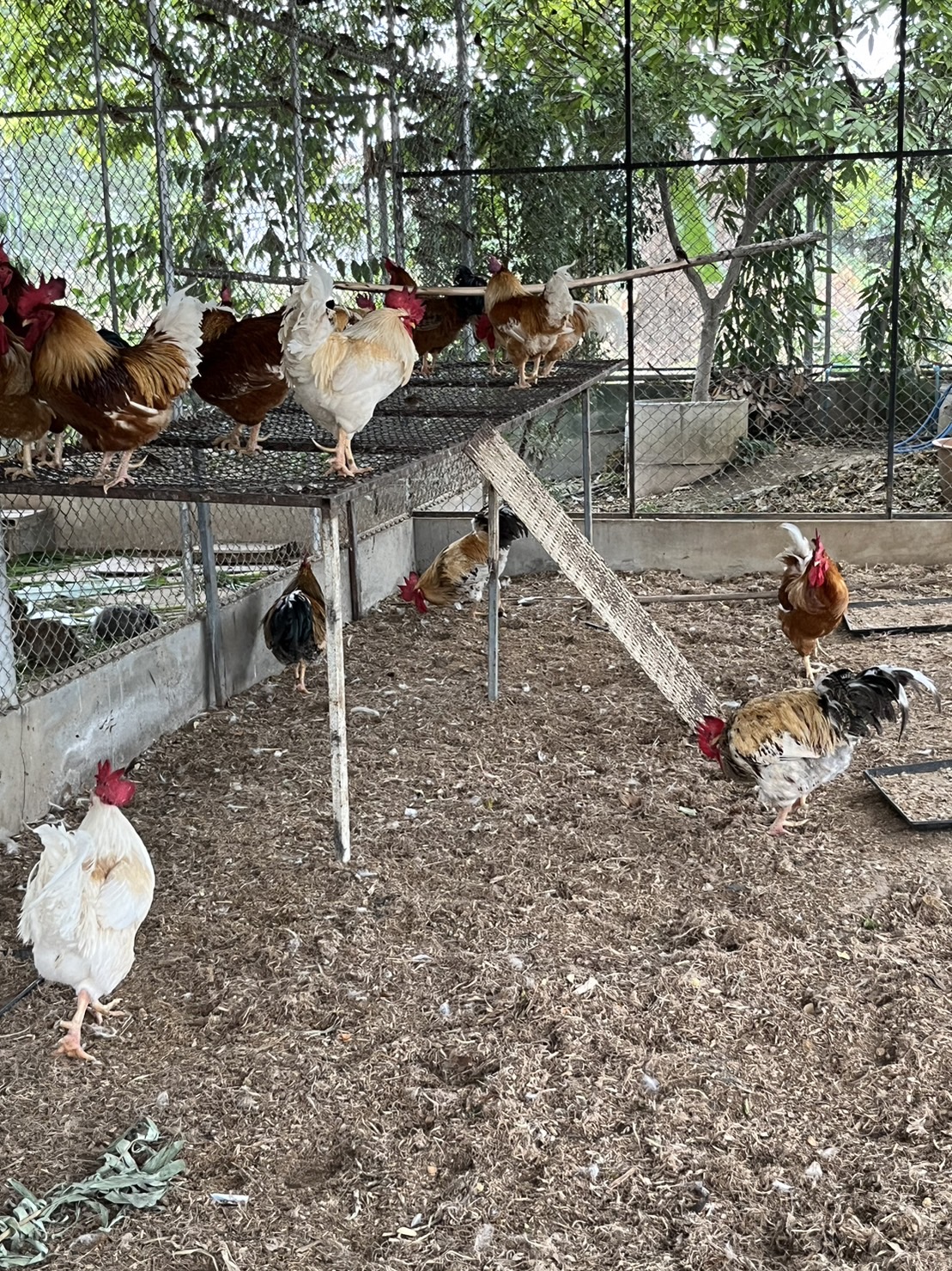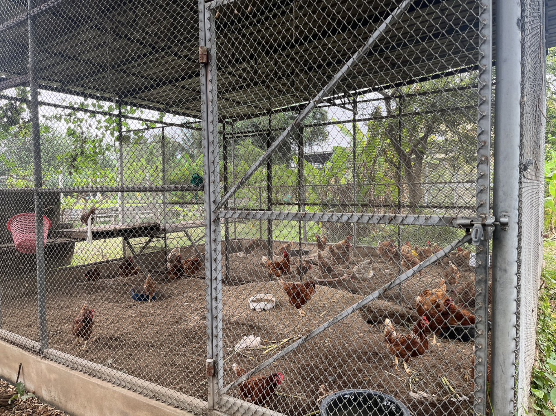 ซึ่งทางสวนของบลูจะเลี้ยงไก่แบบพื้นที่โล่งหรือมีกรงขนาดใหญ่ที่มีพื้นที่กว้างให้ไก่ได้เดินเล่น